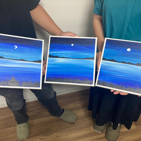 集中してアクリル画を学びたい方(中学生から大人)向けの講座になります。夏季休暇などを利用したり、ご家族やお友達同士での受講もOKです。1回だけでなく、2回目以降も異なるレッスンで受講できます。